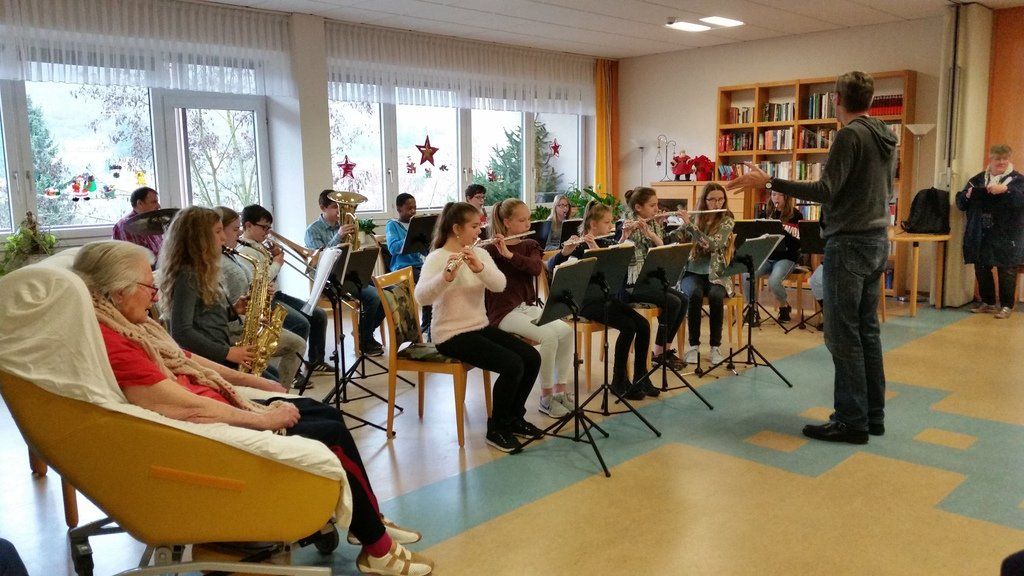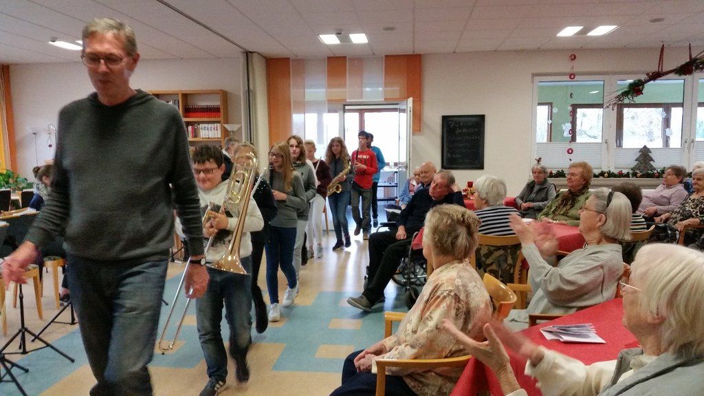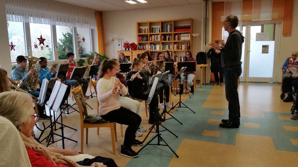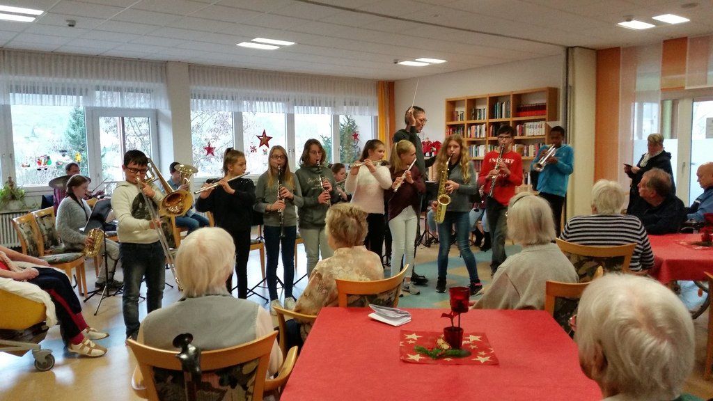 Fast schon traditionell musizieren die Jugendlichen einmal jährlich an einem Vormittag vor oder nach Weihnachten zur Freude und Erbauung der Seniorinnen und Senioren.