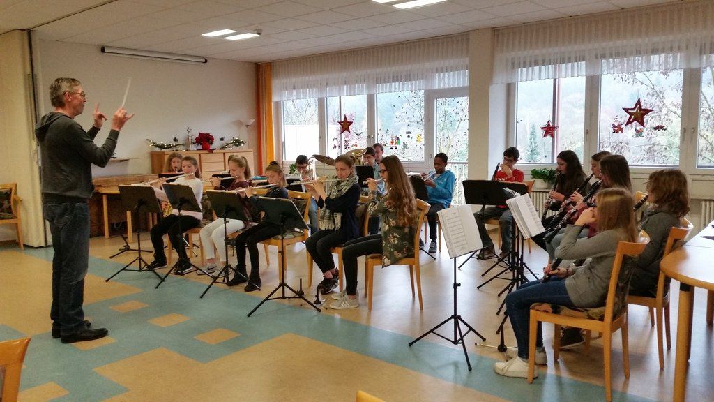 Unter Leitung der Musiklehrers Herrn Bergjohann spielten die Schülerinnen und Schüler Stücke wie "Crocodile Rock", "Surfin' USA", "Rocky Top" sowie verschiedene Weihnachtsstücke wie "We wish you a merry Christmas".
