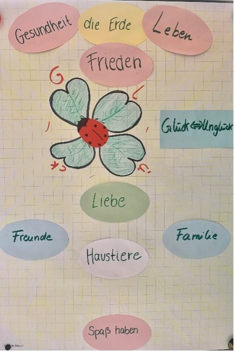 In der ersten Glücksstunde der Klasse 5a ist folgendes Bild zu den Impulsen entstanden: