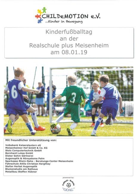 Durch die Kooperation mit dem Verein CHILDeMOTION e.V. konnte am 08.01.2019 für unsere 10. Klassen ein Fußballtag realisiert werden. Hierzu besuchten uns Günter Rommel (Fußballtrainer mit offizieller DFB A-Lizenz) und Patrick Griebel von der Fußballschule „GOAL“, um ein professionelles Fußballtraining über die Dauer des Vormittags durchzuführen. Nach einer Aufwärmphase standen hierbei das Dribbling, sowie Finten und verschiedene Schuss- und Passtechniken auf dem Programm. Nach einer anschließenden Kombinationsübung galt es, die gelernten Inhalte in einem abschließenden Fußballturnier unter Beweis zu stellen.